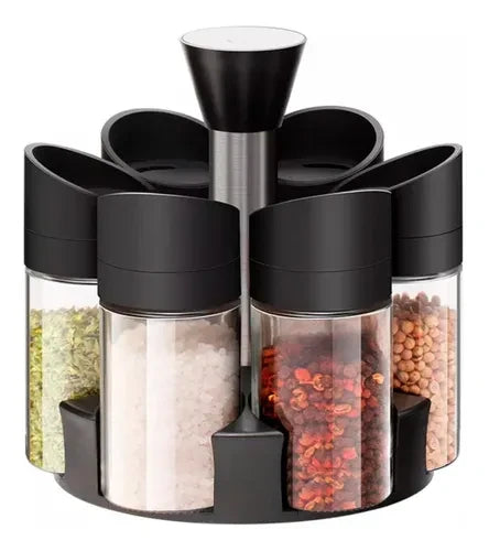 DescripciónOrganizador de especias x 6 puestos PlásticoEste organizador de especias le brindará a tu cocina un toque elegante y despejado, sus 6 recipientes de material plástico de alta calidad son de alta durabilidad fáciles de limpiar, además cada uno de ellos cuenta con una tapa giratoria de 3 posiciones para permitir filtrar desde avena en hojuela hasta granos finos de sal u orégano. Su diseño es giratorio de esta manera podrás alcanzar cada frasco sin problema alguno.«« CARACTERÍSTICAS PRINCIPALES »»Diseño giratorio para fácil accesoTapa de tres aberturas de distintos tamañosTamaño perfecto para ahorrar espacio en la cocina«« ELEMENTOS INCLUIDOS »»Base giratoria6 Recipientes«« DIMENSIONES »»14 cm x 14 cm x 18 cmOtras característicasSistema del especiero: GiratorioLugar de colocación: MesaMaterial de la estructura: PlásticoMaterial de los frascos para condimento: PlásticoCantidad de niveles: 1Es extensible: NoNúmero de frascos: 6